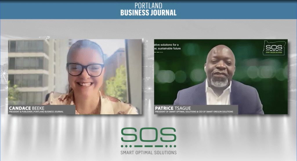 In the News, SOS NewsSmart Oregon Solutions in the Spotlight We’re proud to announce that Patrice Tsague, CEO of Smart Oregon Solutions (SOS), was recently featured in an exclusive Portland Business Journal interview with publisher Candace Beeke. The conversation explored how clean energy and smart technologies are reshaping communities in the Portland–Vancouver region and beyond. Patrice shared how SOS