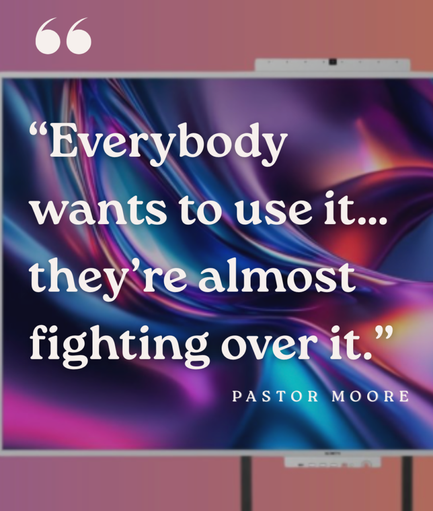 “We literally have to schedule the display so it doesn’t get double-booked,” Pastor Moore says. “Everybody wants to use it… they’re almost fighting over it.”